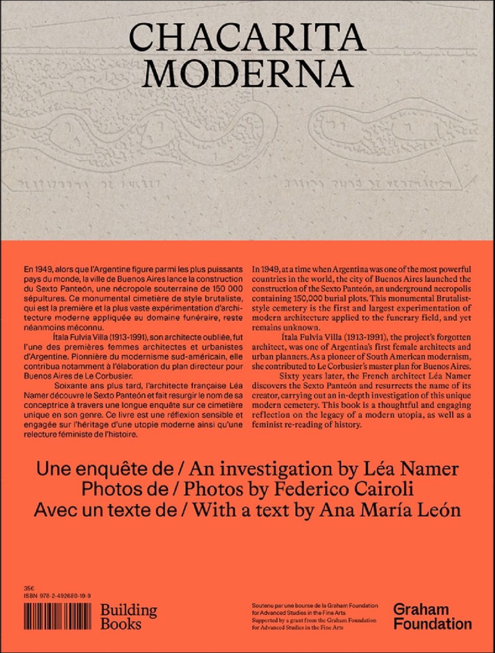 I contributed a text titled “Modernism in Three Acts” to Léa Namer’s Chacarita Moderna: La Nécropole Brutaliste de Buenos Aires, published by Building Books. This book has been a labor of love by Léa and I was thrilled to contribute a text that I had wanted to write since I first learned about Itala Fulvia Villa (1913–1991) and her amazing work at Chacarita. This is a long overdue research on her work.